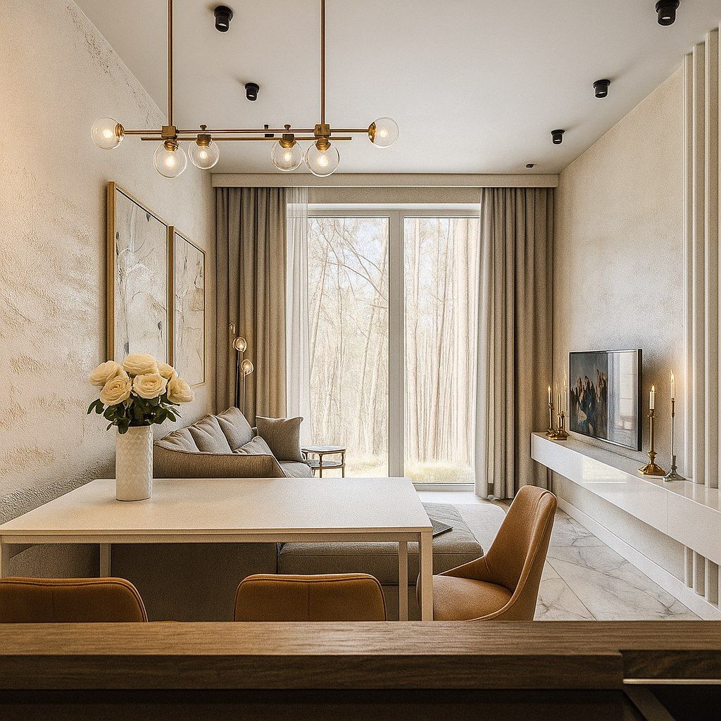 Проект с перепланировкой из однокомнатной в двухкомнатную квартиру. Визуализации сделаны с помощью ИИ. г Ялта. 2022 г. Проект реализован.