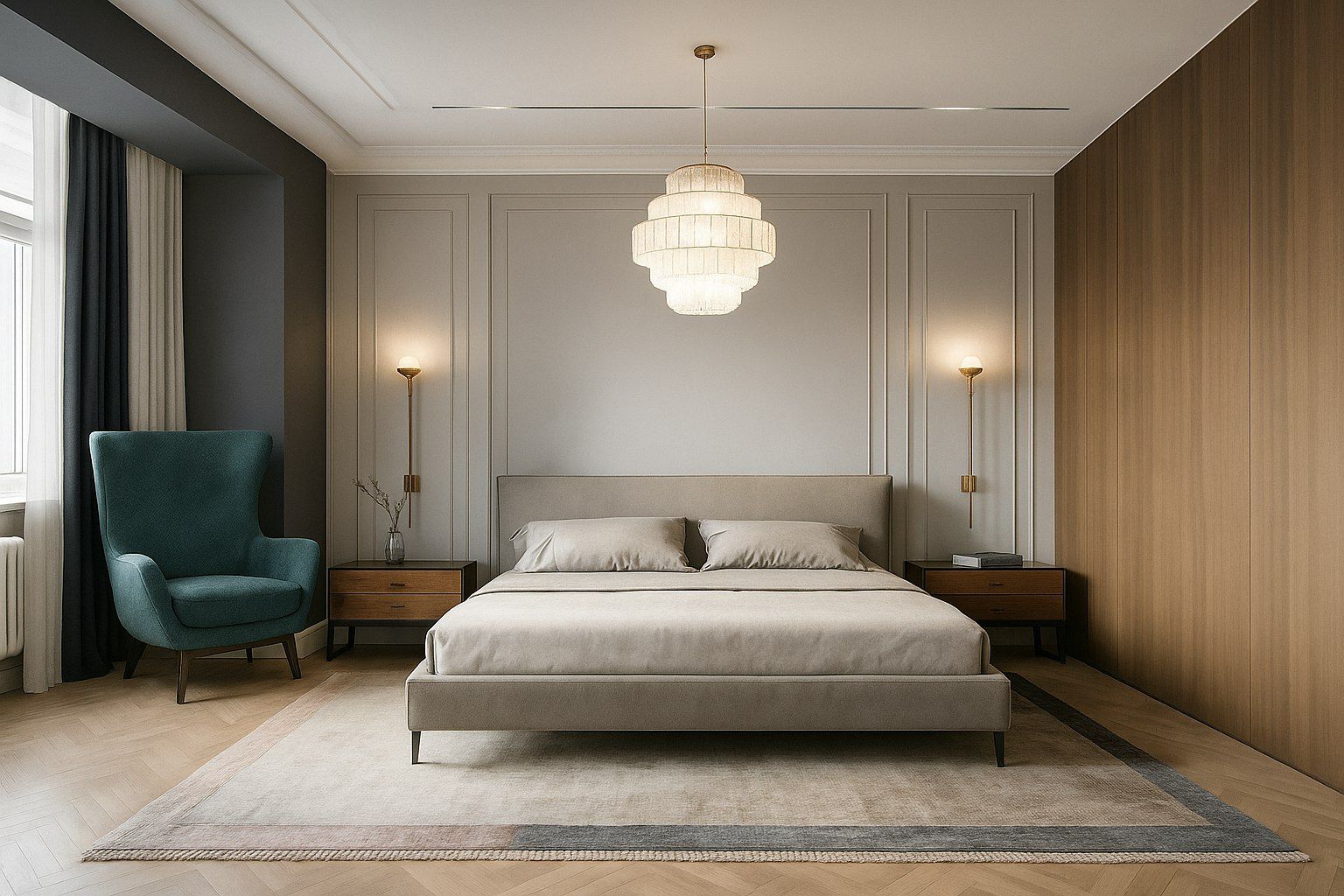 Квартира в ЖК «Митино». Полный проект. Несколько вариантов концепции спальни и ванных комнат, по желанию заказчика. 2024 г. Проект реализован.